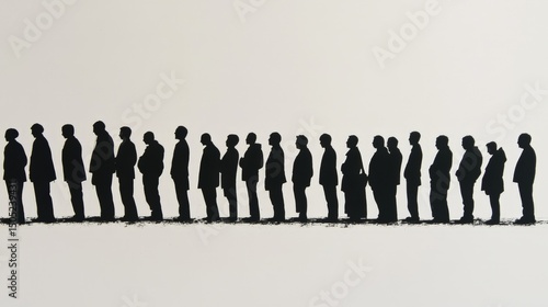 Artistic Illustration of a Queue of People in Winter Clothing Against a Textured Background