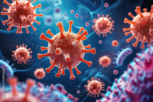 Artistic Illustration of Enlarged Virus Shapes and Microbes on a Vivid Background