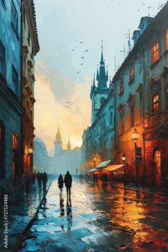 Artistic illustration of Prague city. Czech Republic in Europe.