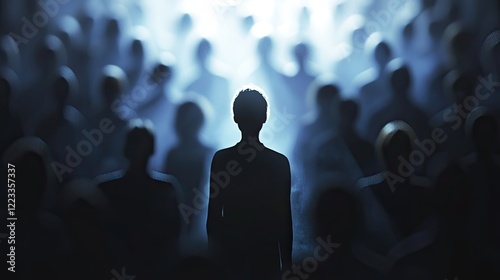 Artistic representation highlights a silhouette of a person amidst a crowd, emphasizing the themes of individuality and the search for personal identity in society.