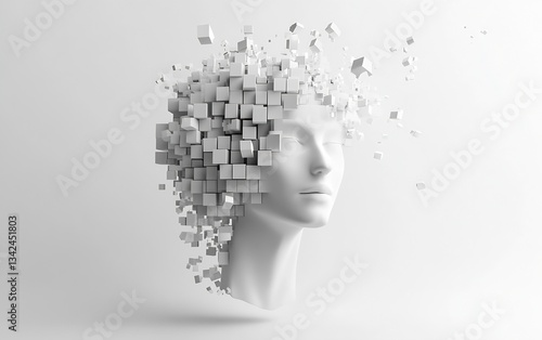 Artistic representation of a human head made from floating cubes in a minimalist style : Generative AI