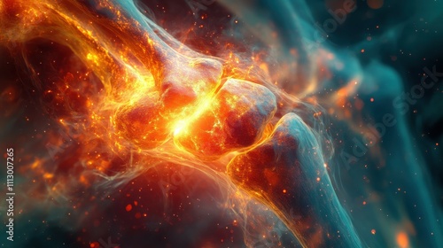 Artistic representation of an abstract joint with highlighted areas indicating pain, using warm colors to evoke emotion.
