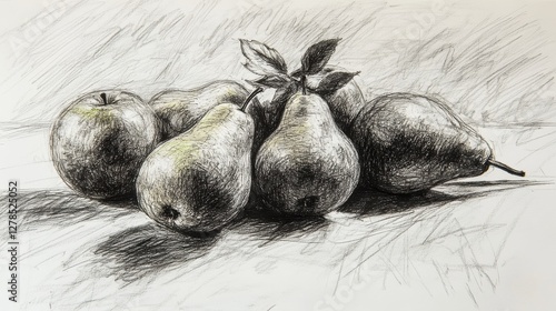 Artistic Sketch of Pears with Leaves on a Simple Background