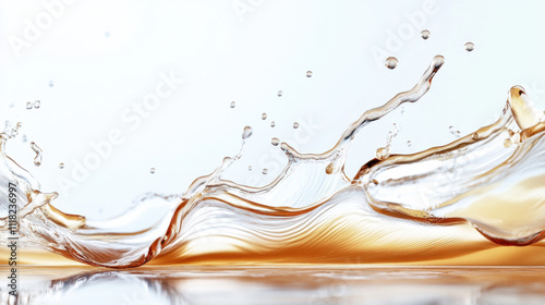 Artistic splash of amber liquid creating dynamic abstract shapes against a light background.