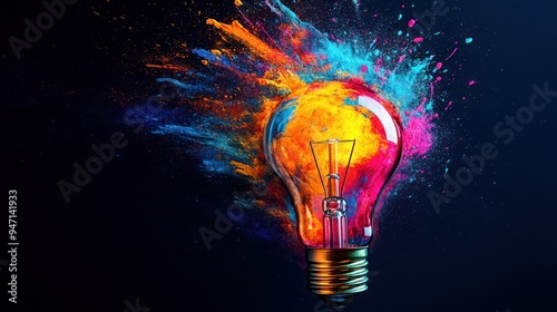 Artistic splash of vibrant colors transforming into a lightbulb, creative concept
