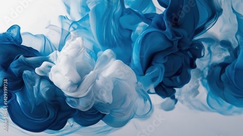 Artistic swirl of blue and white ink. Ideal for visual effects, branding backgrounds, or modern graphic design.