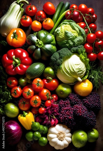 artistic vegetable arrangement showcasing variety colors textures under soft natural lighting, display, composition, fresh, produce, organic, aesthetic