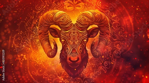 Artistically crafted Aries zodiac symbol - A highly stylized digital representation of the Aries ram zodiac with ornamental details