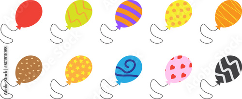 Artsy Colorful Hand Drawn Balloon Flat Vector Illustration Set