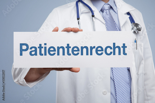 Arzt mit Schild Patientenrecht