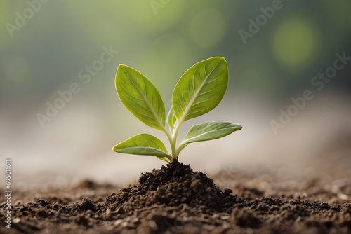 As a new sprout emerges from the soil, nature and sustainability are symbolized in the background