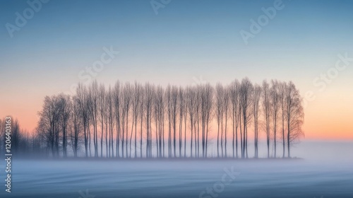 As dawn breaks, a magical mist blankets the forest, shrouding the towering trees in mystery and creating a serene, tranquil ambiance