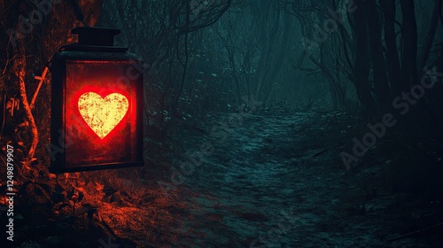 As dusk falls, an enchanted lantern casts its light on a tranquil forest path
