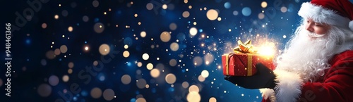 As Santa Claus opens his Christmas present in the dark, golden stars appear