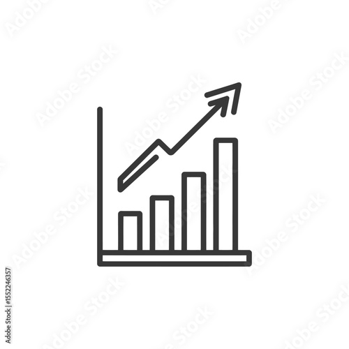 Ascending Bar Graph with Arrow: Business Growth Icon in Outline Style