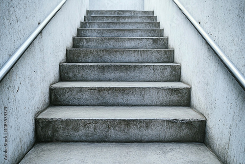 Ascending Concrete Steps with Metallic Handrails, Pathway Towards Unknown