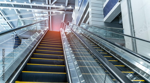 ascending escalator in a public transport area
