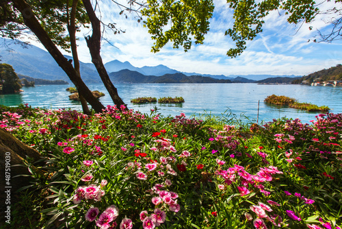 Asia culture - Beautiful landscape of lake level reflect fantasy dramatic sunrise sky in Sun Moon Lake , in Taiwan, Asia. the famous travel attractions in Nantou ,Taiwan. Scenery of Sun Moon Lake,