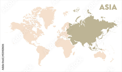 Asia in world map-07, Map of Asia, highlighted on the world map, Asia on the world map, Satellite view, Asia location on the globe.