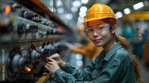 Asia workers working at technology production factory with industrial machines, manufacture.