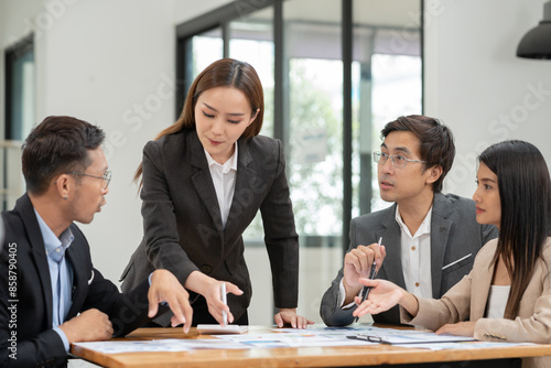 Asian Business Group Chat about graph work Present in meetings, in the office