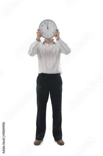 asian business man holding a clock concept photo