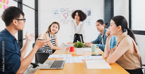 Asian business people meeting conference and brainstorming in modern office, casual and hipster clothing