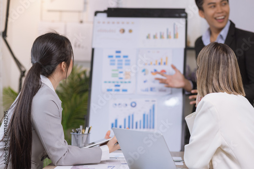 Asian business teamwork working on digital tablet with analysis report and advisor showing plan, Financial analysis and Marketing teamwork concept.
