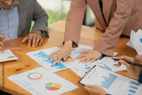 Asian businessmen, women and men Talk about new projects, presents at home office.