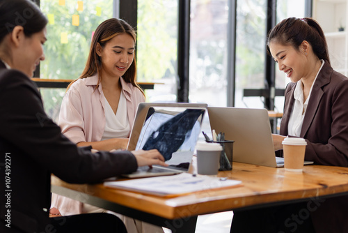 Asian businesswoman teamwork working on laptop with finances analysis report at desk in office, business financing, accounting banking, Team of creative and business planning,