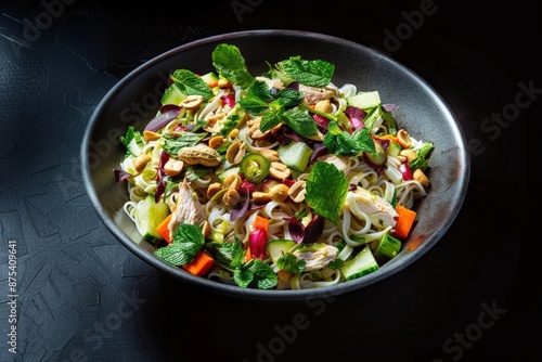 Asian Chicken Noodle Salad with Fresh Herbs and Peanuts