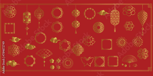 Asian cloud set. Traditional cloudy ornaments in chinese, korean and japanese oriental style. Set of vector decoration retro elements.