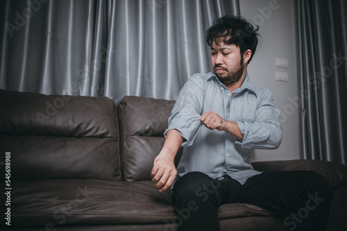 Asian handsome man stress from work overload,Tired male come back home after a lot of work from company,risk of depression