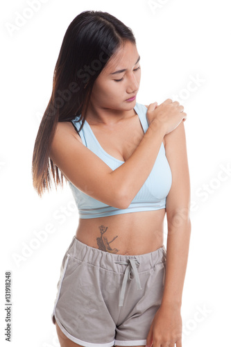 Asian healthy girl got shoulder pain.