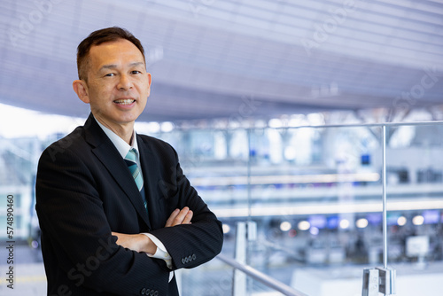 Asian middle-class businessman heading for an overseas business trip in the airport lobby.