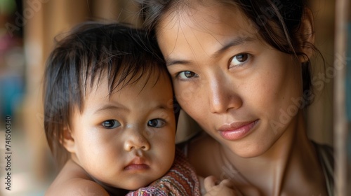 Asian Mother and Child: A Close-Up Portrait Generative AI