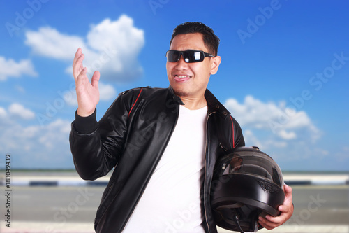 Asian Motorcyclist Biker Racer Smiling