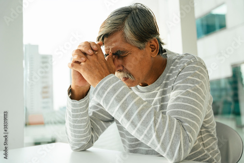 Asian old man having headache problem.