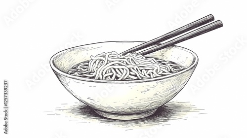 Asian ramen illustration featuring a steaming bowl of noodles, chopsticks, and flavorful ingredients, perfect for culinary projects and restaurant branding, artistic sketch style