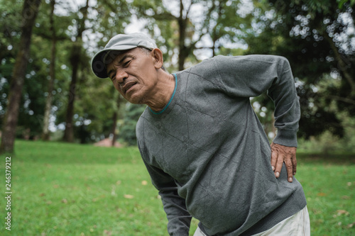asian senior old man having back pain