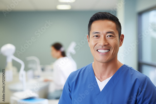 Asian smiling doctor. World of Medicine. Personal care profession. Medical studies. China. Japan. AI.
