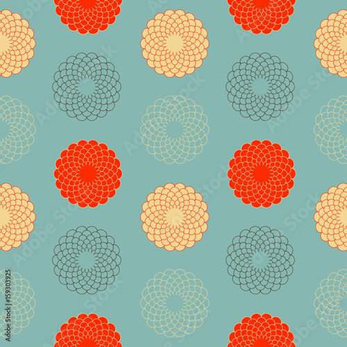 asian style seamless with graphic flowers in red and blue