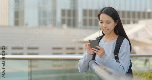 Asian Woman working on cellphone at outdoor