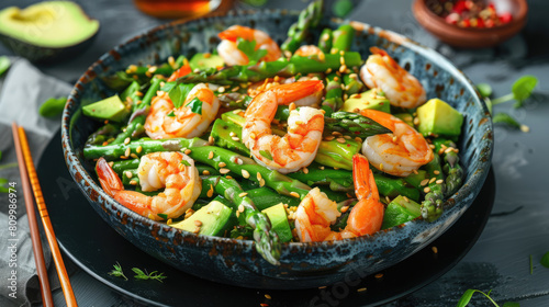 Asparagus salad with shrimp and avocado