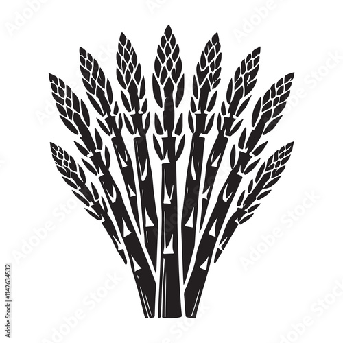 Asparagus Silhouette Vector Illustration, Solid White Background.