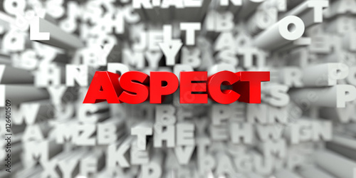 ASPECT - Red text on typography background - 3D rendered royalty free stock image. This image can be used for an online website banner ad or a print postcard.