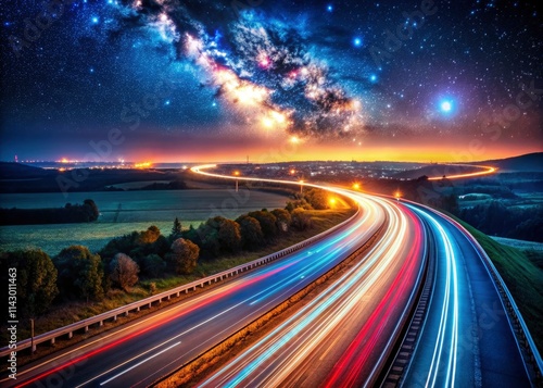 Asphalt ribbons under starlight: explore breathtaking night highway photography.