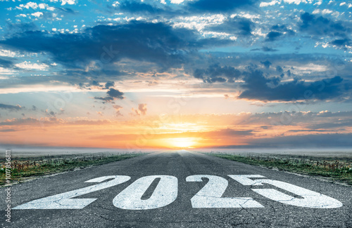 Asphalt road with the number 2025 New Year. 2025 New Year.