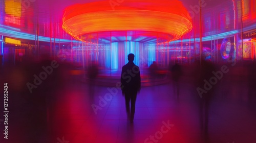 Assassination attempt in a vibrant amusement park. Featuring a figure among the colorful rides