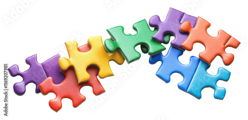 Assembling colorful puzzle pieces on a white surface creative activity indoor environment top-down viewpoint